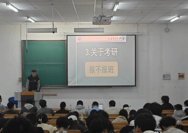 随后,张昊哲围绕“考研时间安排”、“院校选择”、“考研报班”等困扰大多数同学的问题进行分享。对于考研的时间安排,他建议同学们制定科学合理的备考计划,明确各阶段学习目标,提高学习效率;针对“考研报班”问题,他认为需结合自身学习基础、自律能力等因素综合考量,若自学能力较强、能合理规划学习进度,可选择自学,若存在学习方向不明确、自律性较差等问题,报班则能提供更系统的指导与帮助,但仍需有自己的计划和安排。