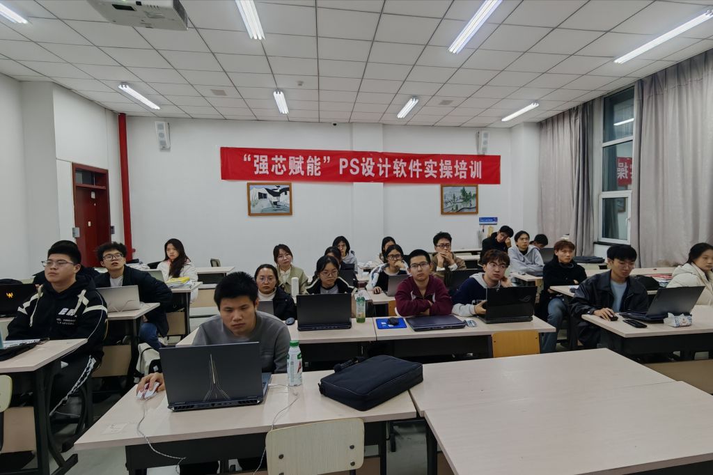 活动伊始,许通陆围绕“铸魂・领航”劳动教育实践项目展开阐述,重点解读了项目在培养学生劳动精神、落实“五育并举”目标中的关键意义。他强调,此次培训是学校统筹规划、学院牵头落实的全校性劳动能力素质提升活动,聚焦 PS 软件实操能力培养,针对设计新手与兴趣爱好者精准发力,旨在帮助同学们快速掌握实用设计技能,为未来学习科研、学生工作中的宣传创作、图像处理等需求筑牢基础,进一步强化劳动实践意识与创新应用能力。